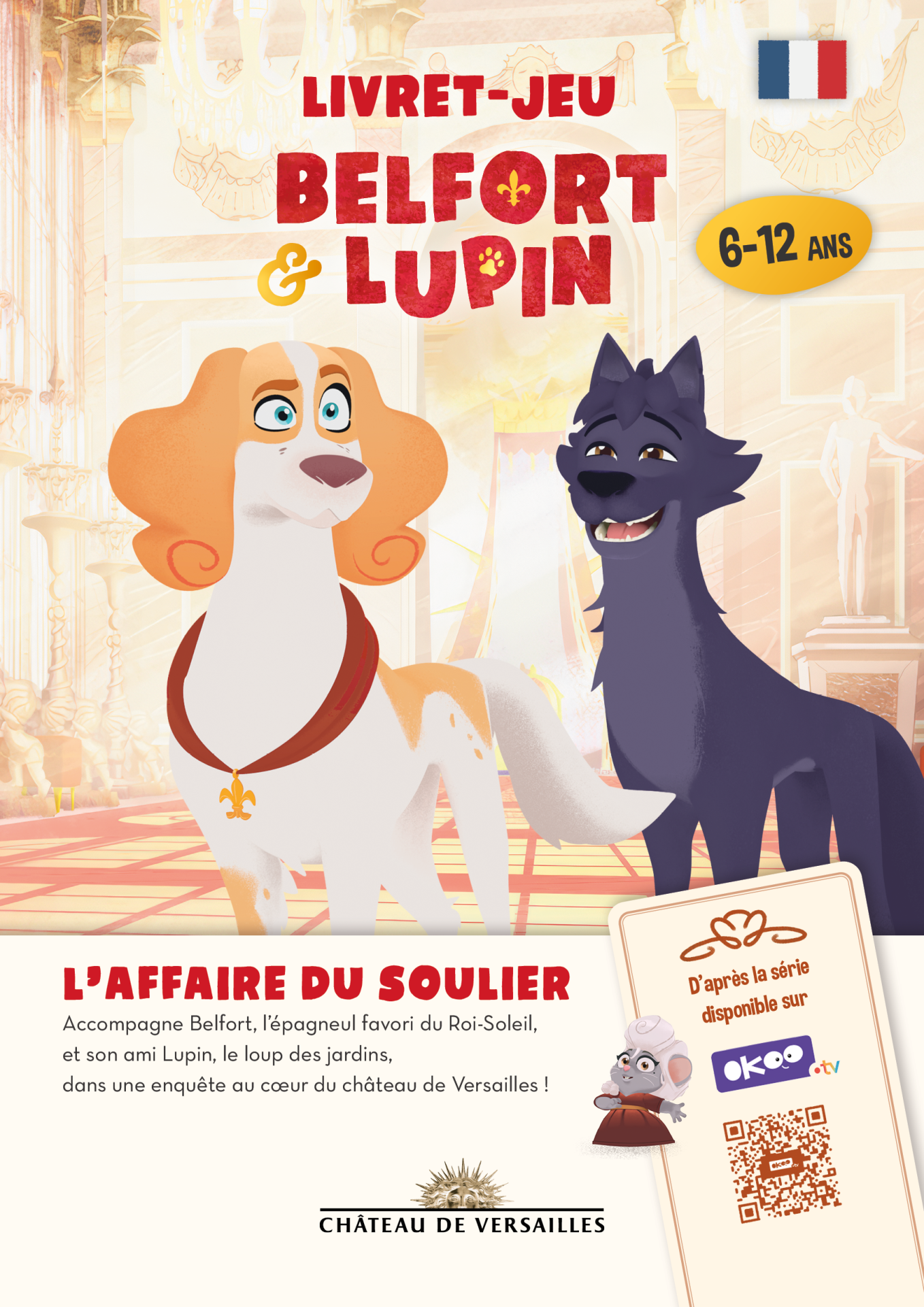 Ce livret-jeu est tiré de la série animée Belfort et Lupin, créée en collaboration avec le château de Versailles, qui relate de drôles d’aventures animalières au cœur du Versailles de Louis XIV.
